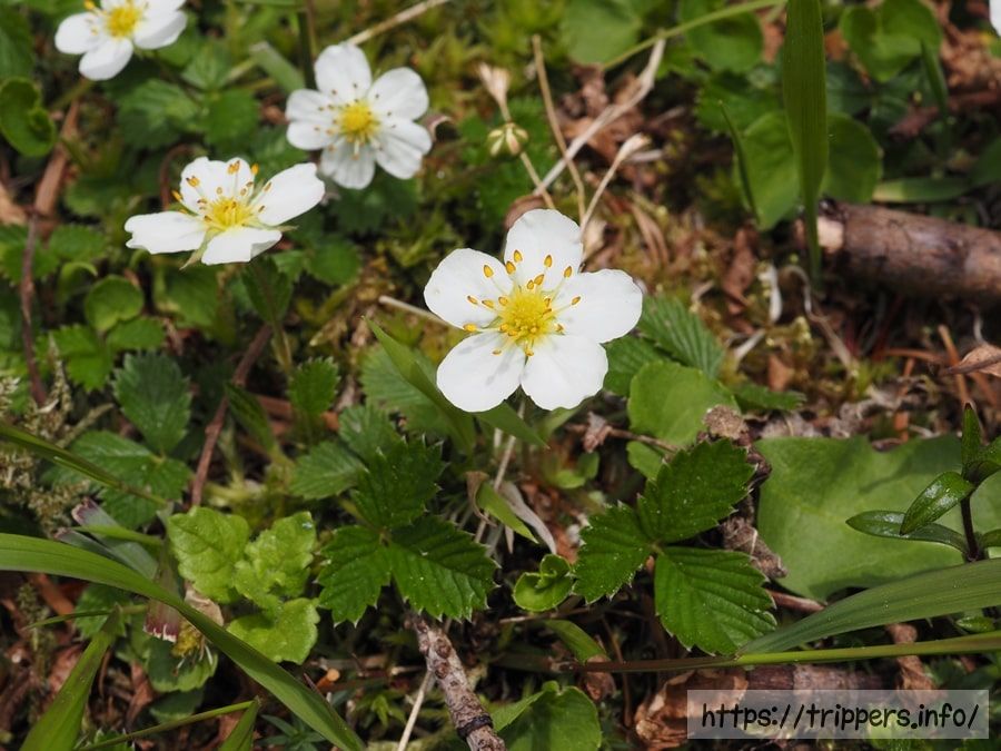 シロバナノヘビイチゴは沢山見かけました。チョウノスケソウかと思ったら、花弁の数が違いました。チョウノスケソウは八ヶ岳の稜線で見かける存在です。八ヶ岳ではチングルマは自生せず、代わりにチョウノスケソウが咲きます。