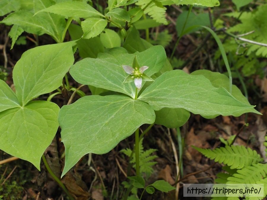 ミヤマエンレイソウです。林道は前にも後ろにも人がいません。夏になると大量のアブに追いかけられる場所ですが、今はその心配も要りませんでした。