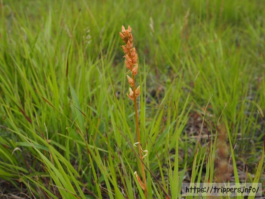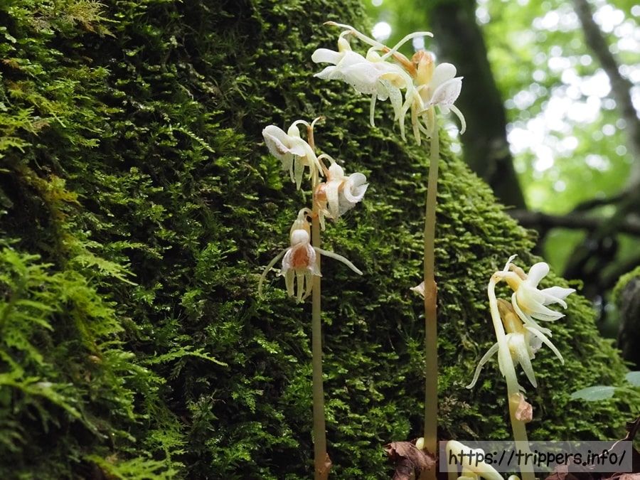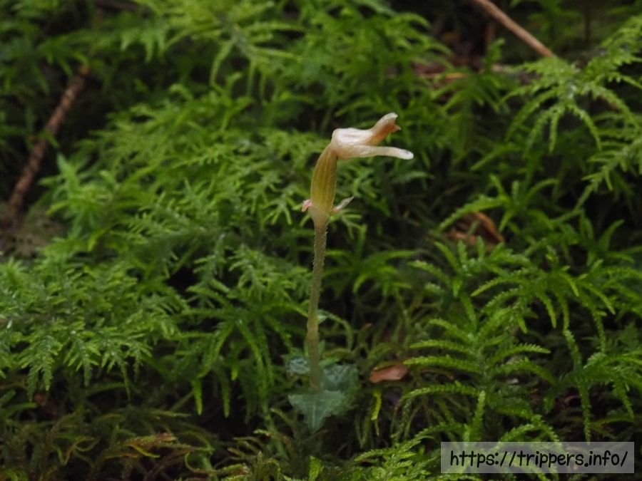 トラキチランは自生地が限られていて、会いに行くだけでもなかなか大変です。花柄子房がねじれないためイカのような見た目です。「萌えしか勝たん」とはこの見た目、この植物のことですね。推しが尊いので、ケミカルライト両手持ちして、オタダンで祭ります。腐生植物に敏感に反応して、厨二病数値が上がってしまいました。