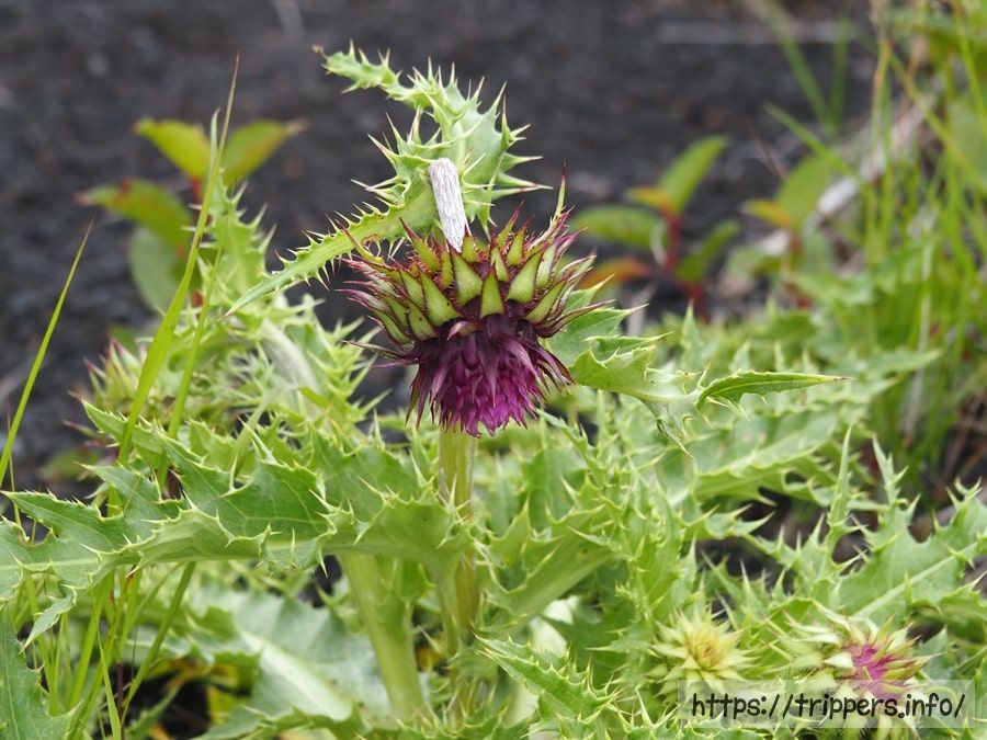 フジアザミです。山中湖周辺にある鉄砲木ノ頭には、白花であるシロバナフジアザミが自生しています。