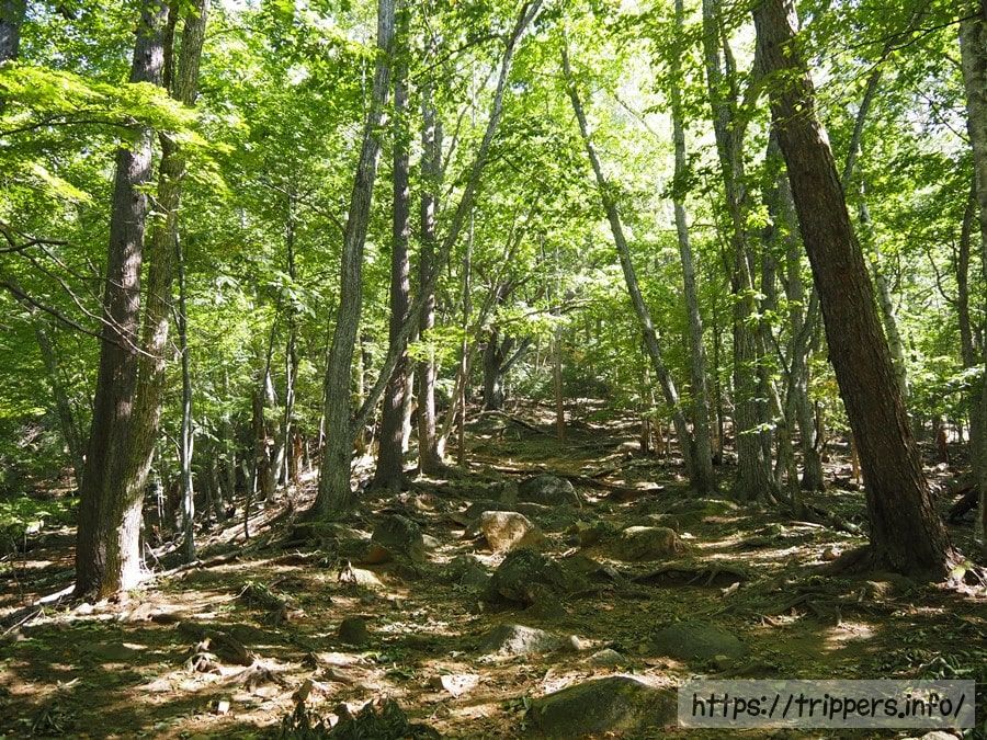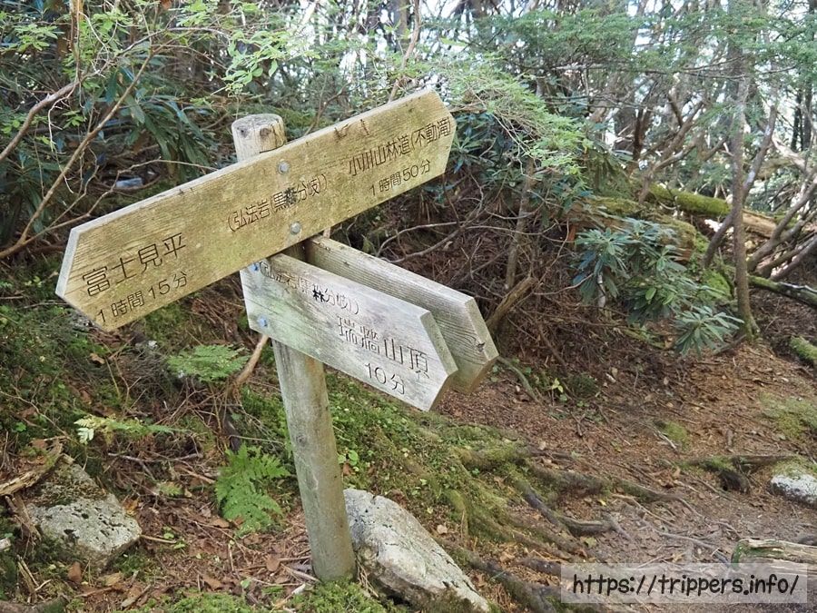 桃太郎岩経由のルートと不動滝経由のルートが合流する分岐まで登ってきました。山頂までは10分です。では、下山を開始しましょう。