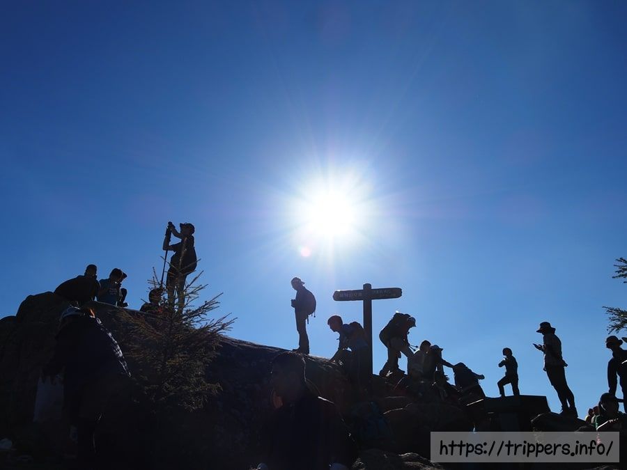 ベンチと展望がある場所まで登ってきました。バスの車内では何とか座れましたが、増便され、車内はぎゅうぎゅうに詰め放題でした。登山道も団体が多く、静かで平らなテント場を確保できるか気になります。今の主流は、1グループに1テントではなく、1グループだけどテントは1人1人別々です。
