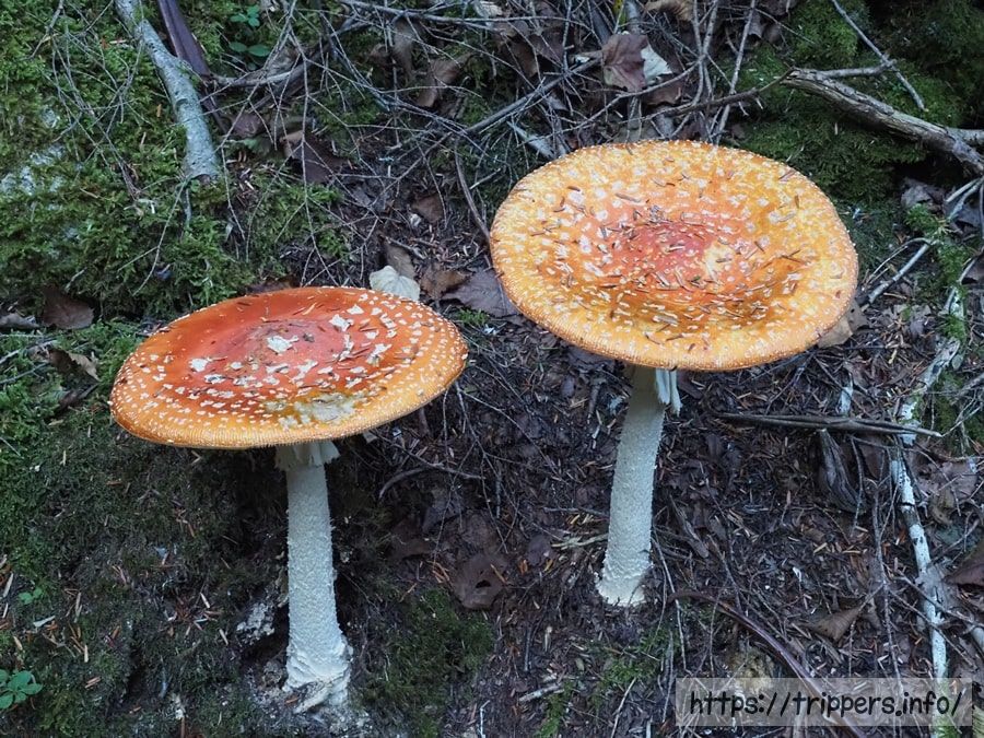 毒キノコであるベニテングタケを見つけました。実はおいしいキノコらしく、茹でて塩付けにすることで毒を抜き、食べることができるらしいです。長野県上田市の菅平地区にそんな風習があったんだとか。