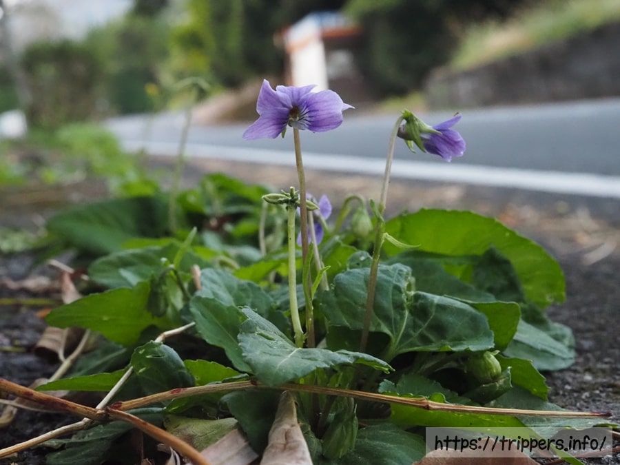 道端にスミレが返り咲きしていました。リュウキュウコスミレまたはコスミレのようです。