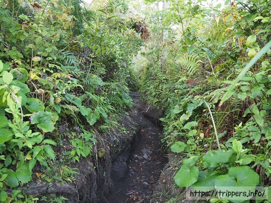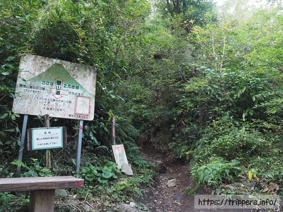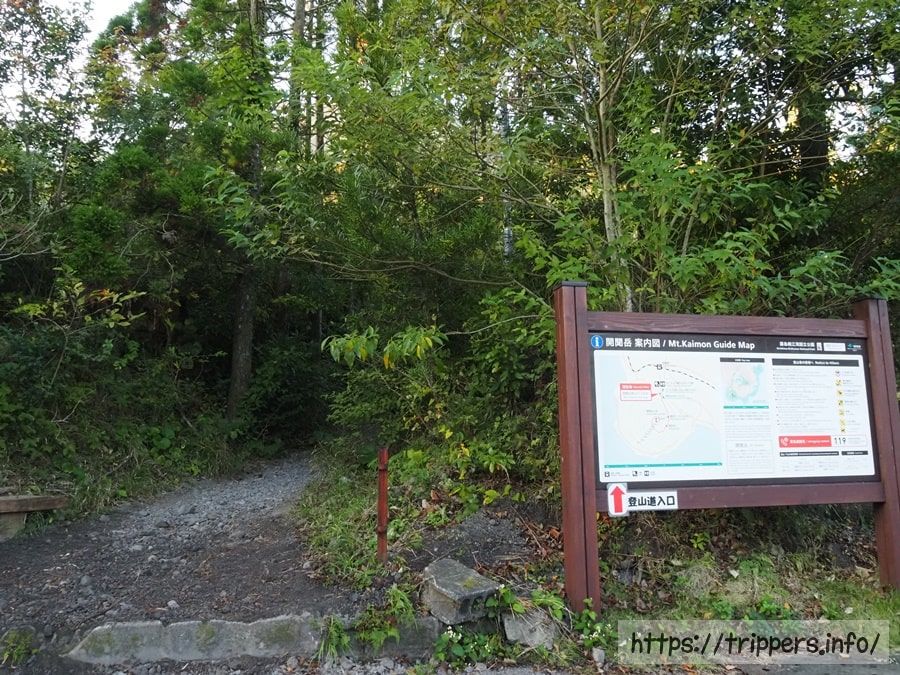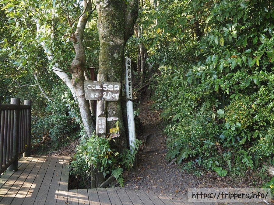 開聞岳2合目に到着しました。アスファルトの道はここで終了し、本格的な登山道になります。