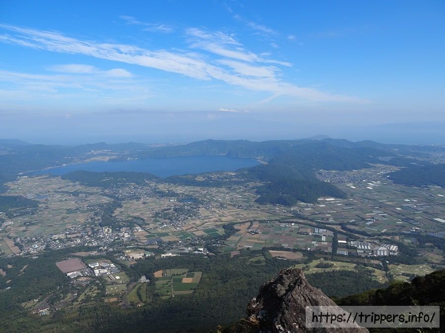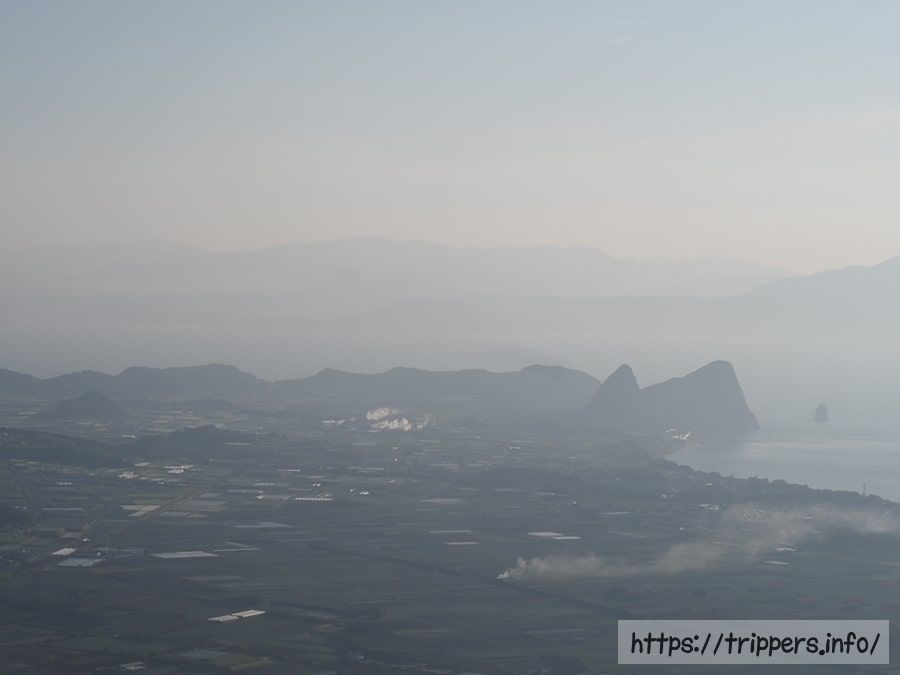 眼下には未確認生命体であるイッシーで有名な池田湖です。と言っても、私はイッシーが話題になった頃の世代ではないので、初耳でした。UMAが騒がれていた平成は遠い昔です。ミステリーサークルとか流行っていましたね。残念ながら、靄で桜島が見えませんでした。