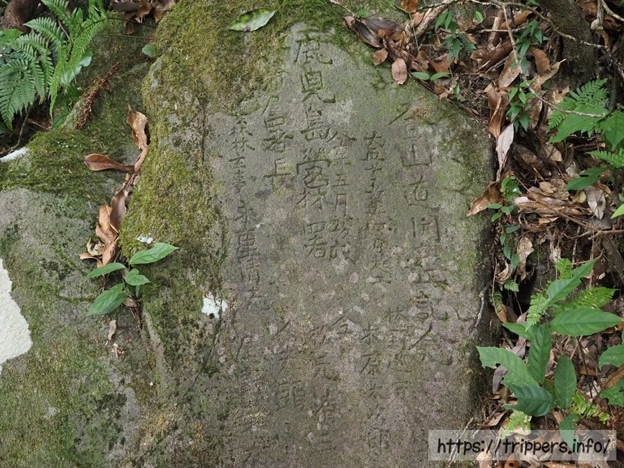 石碑がありましたが、読めないです。登山道開通を記念した警察署関連の何かだと思います。いずれ、普通の石へ還っていくことでしょう。