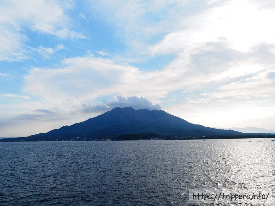 桜島にある最高峰の御岳は標高1,117mですが、活火山のため登頂できません。立ち入れる最高峰は標高374mある湯之平展望所で、そこに立って暫定的に登頂とします。溶岩なぎさ遊歩道など桜島観光や鹿児島市内観光もします。