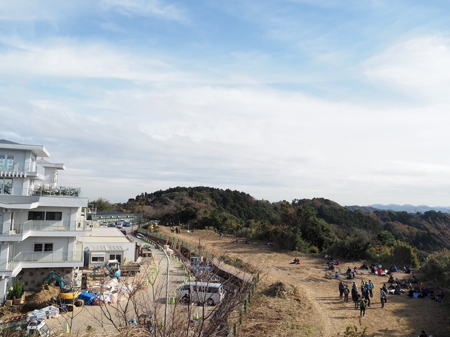 山頂直下は広場になっており、そこで昼食にします。この先には天園公衆便所があります。左手にはゴルフ場(鎌倉カントリークラブ)があり、隅っこの方の練習場では、フェンス越しの登山者にじろじろ見られながらプレイしていました。