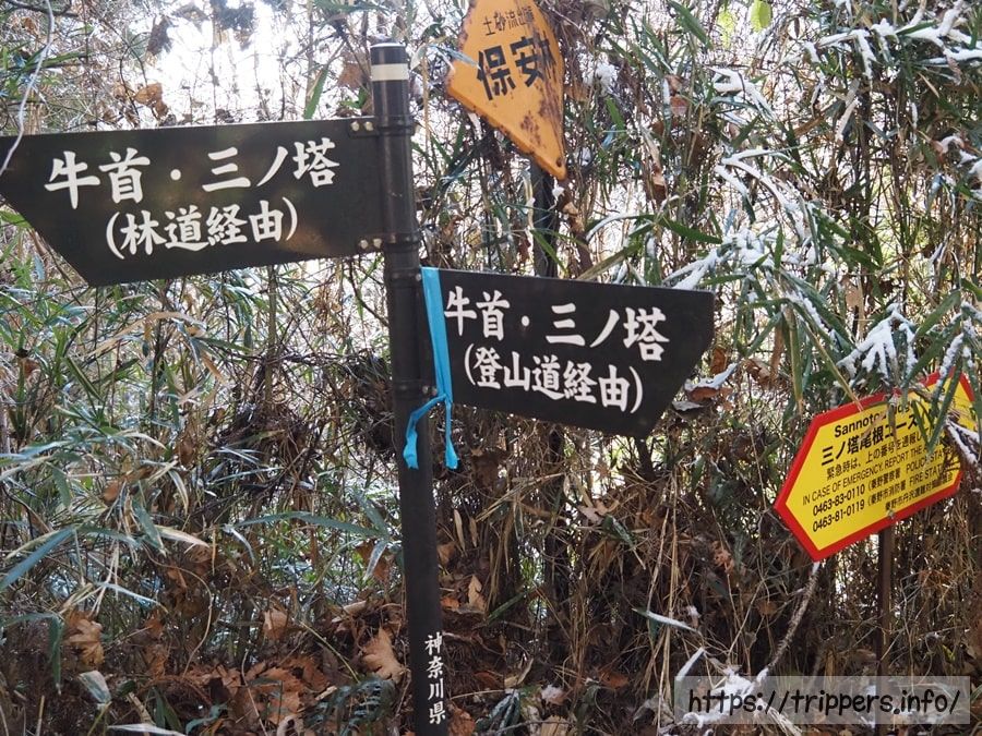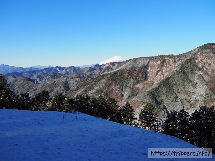三ノ塔尾根には眺望がありますが、標高が低いために富士山が隠れてます。山肌を白く染める雪は、日中には幾分溶けてしまうと思います。再び寒くなっても透明に凍るだけだと思い、白い景色を見るには、翌日訪れても時すでに遅しです。そう自分に言い聞かせて、今日は山に行かずに二度寝をする怠惰を一蹴しました。