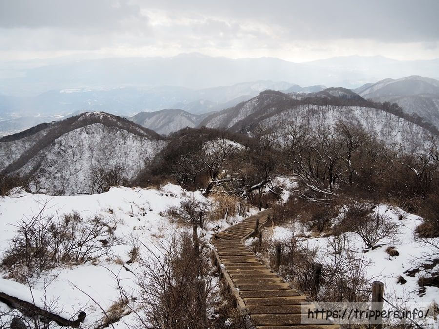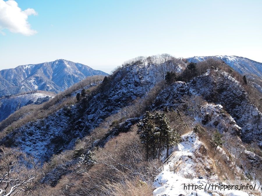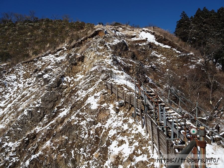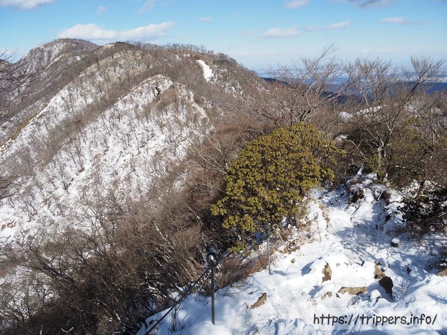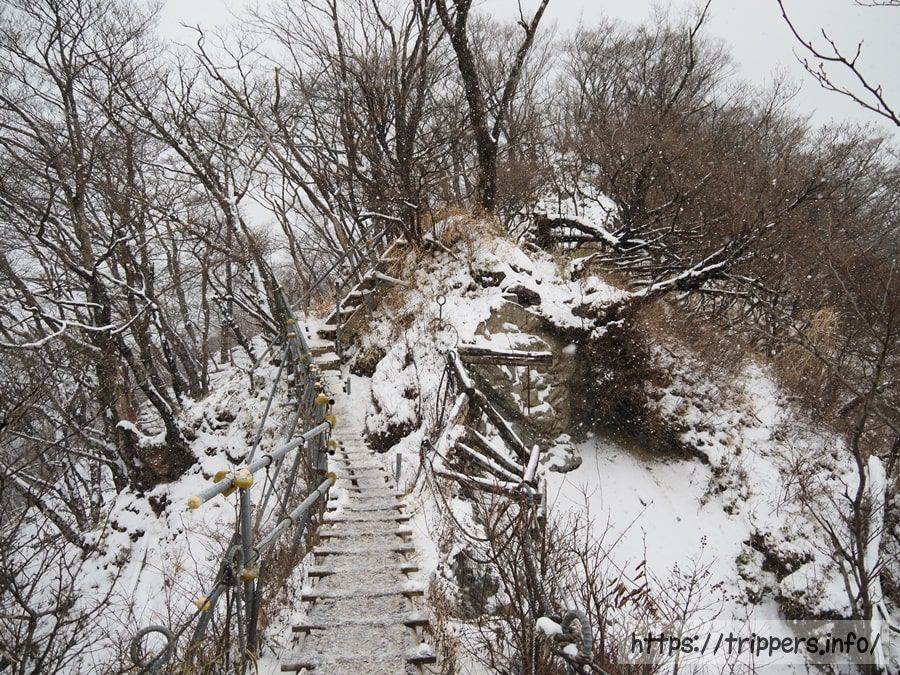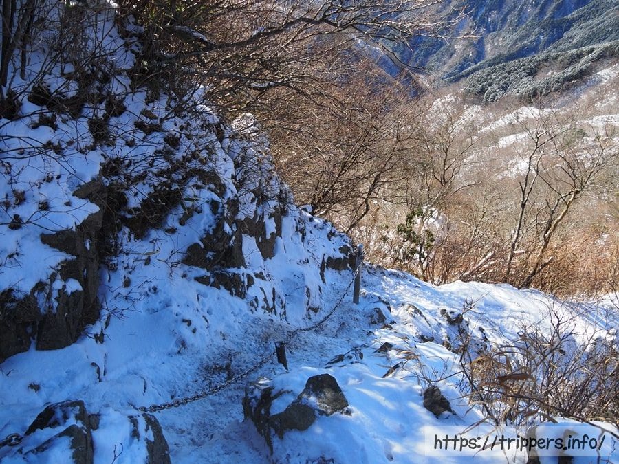2つめの鎖場は更に難易度があります。雪で足元が滑らないようにゆっくり下りましたが、鎖がツルツルで鎖をちゃんと握るのに苦労しました。登山技術が皆無なのに、よく大きな怪我や遭難をせずに今まで登山してこれたと思います。