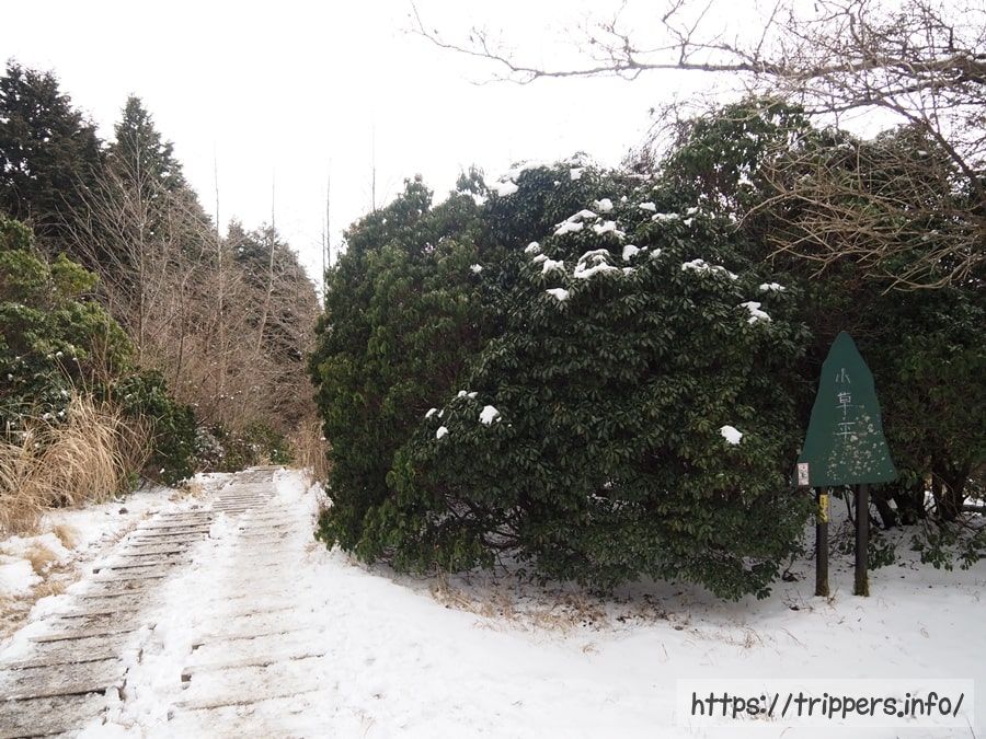 念のためチェーンスパイクを装着します。だったら最初から表尾根を歩く段階で装着してれば良かったと思うかもしれませんが、なるべく木道をチェーンスパイクで痛めたくないので... もごもご... もごもご...