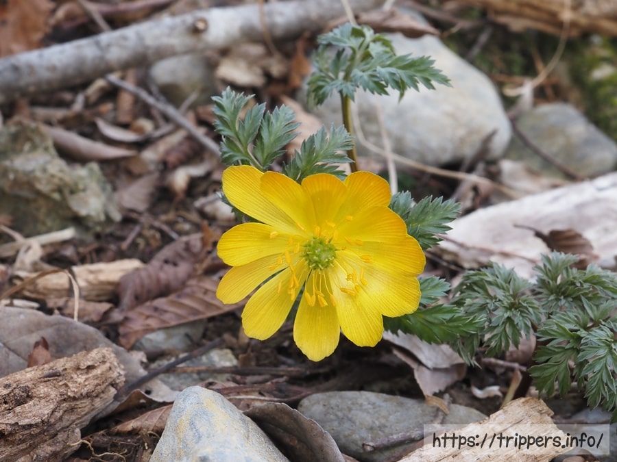 こちらにもフクジュソウが自生していました。北側斜面なので、開花時期が孫太尾根より遅い印象です。