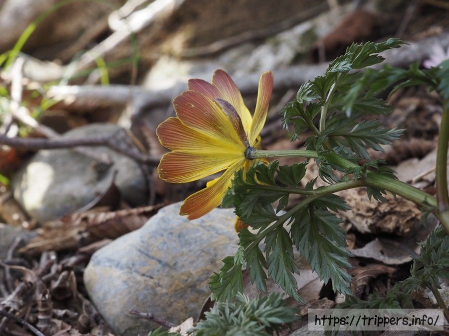 藤原岳と丸山、どちらにも両方存在するとのことで、自然交雑も起こっていそうです。フクジュソウの仲間には、他にミチノクフクジュソウとキタミフクジュソウが存在します。丹沢で以前フクジュソウを見に行ったことがあるのですが、丹沢のフクジュソウはミチノクフクジュソウだという声とエダウチフクジュソウだという声があります。