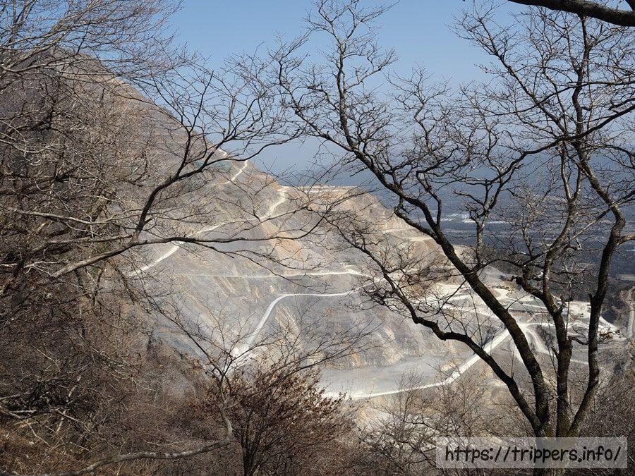 伊勢治田駅から見えていたセメント採掘の斜面でしょうか。草も木も、全く何もなくなってしまうんですね。