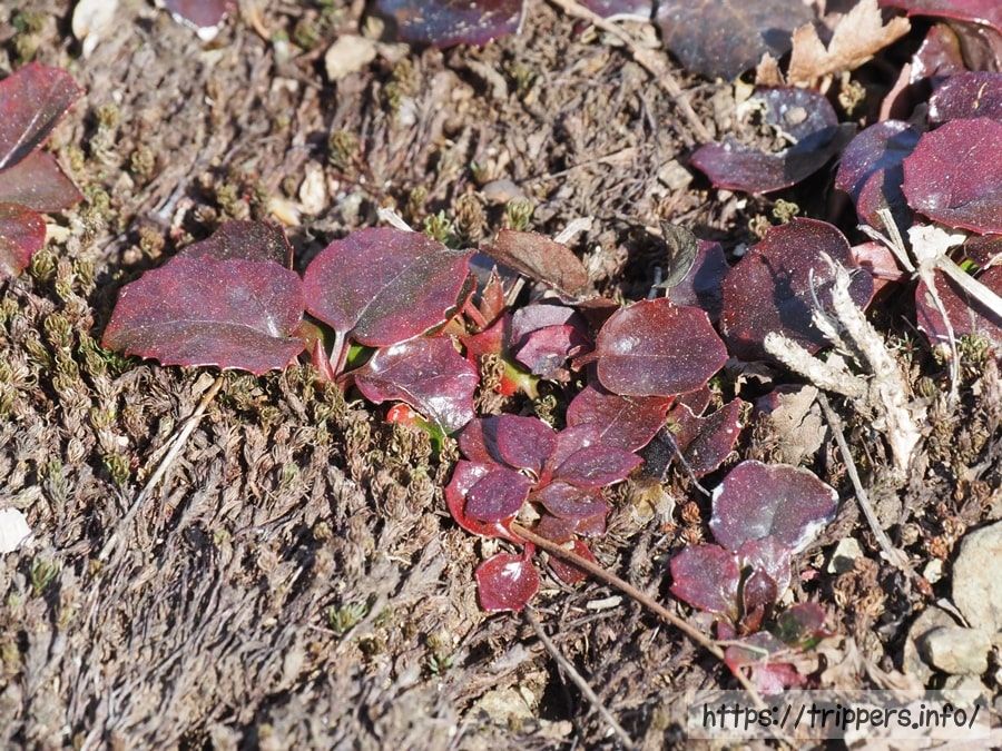 イワカガミの葉ですかね。他に花は咲いていないけれど、葉は既にありそうなタキミチャルメルソウなど記憶の片隅に置いておきます。どこにどんな植物があるのか、知らないことだらけで、視界に山野草の葉を捉えたら認識できるよう頑張ります。