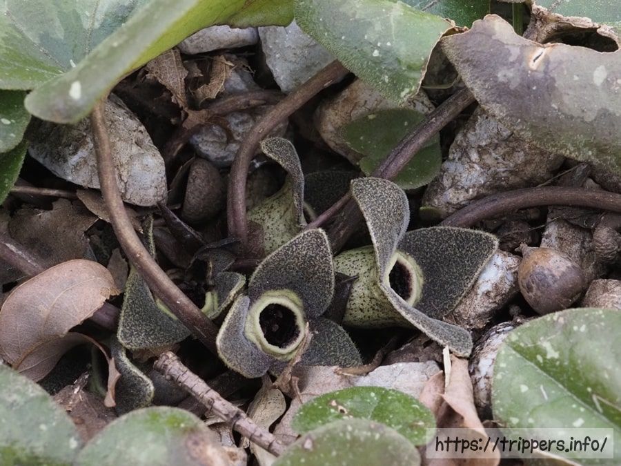 孫太尾根にもカンアオイの葉が存在しましたが、数えきれない程、葉の裏をめくりましたが、花が1つもありませんでした。考えられるのは花を付ける時期が異なる別の種であると考えられます。調べてみると、5月頃に開花するコトウカンアオイのように思いました。冬に咲くカンアオイだったら、痛んだ花がまだ残っている気がします。