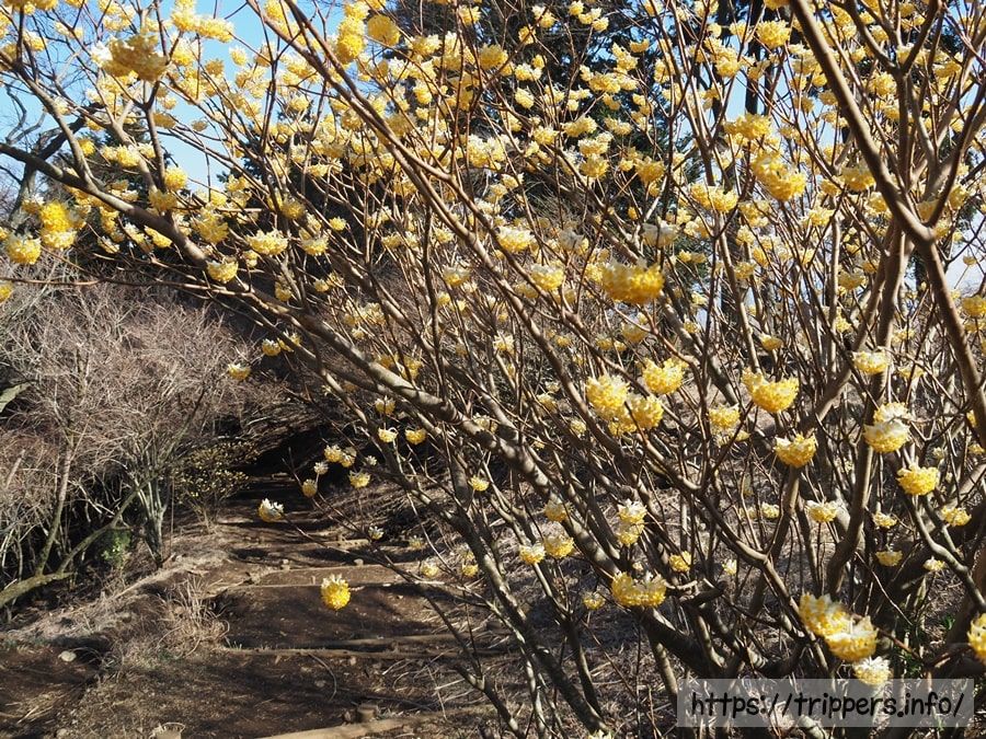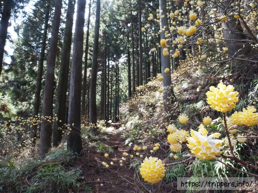 不動尻分岐まで戻り、見晴台を日向薬師の方へ進みます。ここにもミツマタが咲いていました。