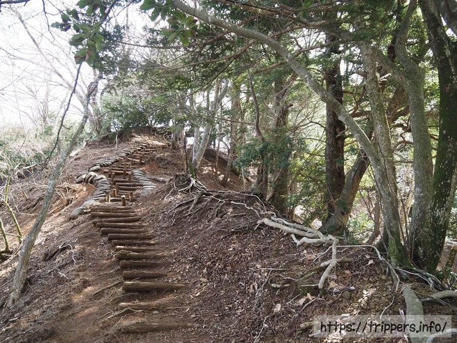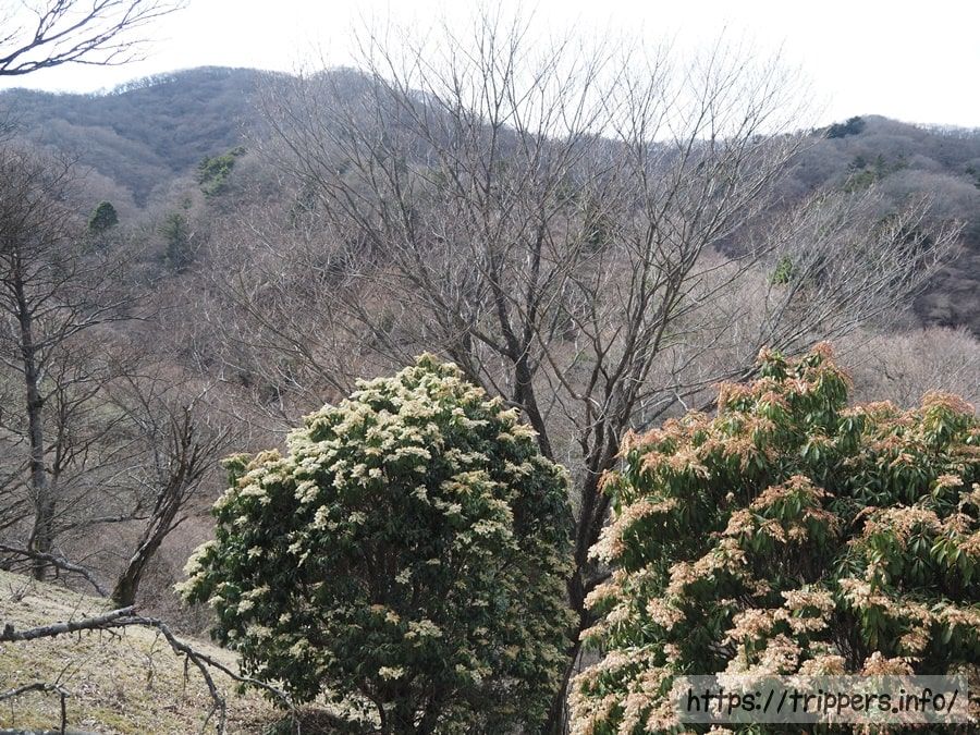 アセビと展望と階段が豊富な尾根です。ここで柏木林道まで歩くという登山者に出逢いました。なんでも不動尻と違って柏木林道は知名度がないミツマタの群生地なんだとか。来年は髭僧の滝と春嶽山を抱き合わせで行きたいなんて考えていたので、柏木林道もそこに追加してみようかと思います。