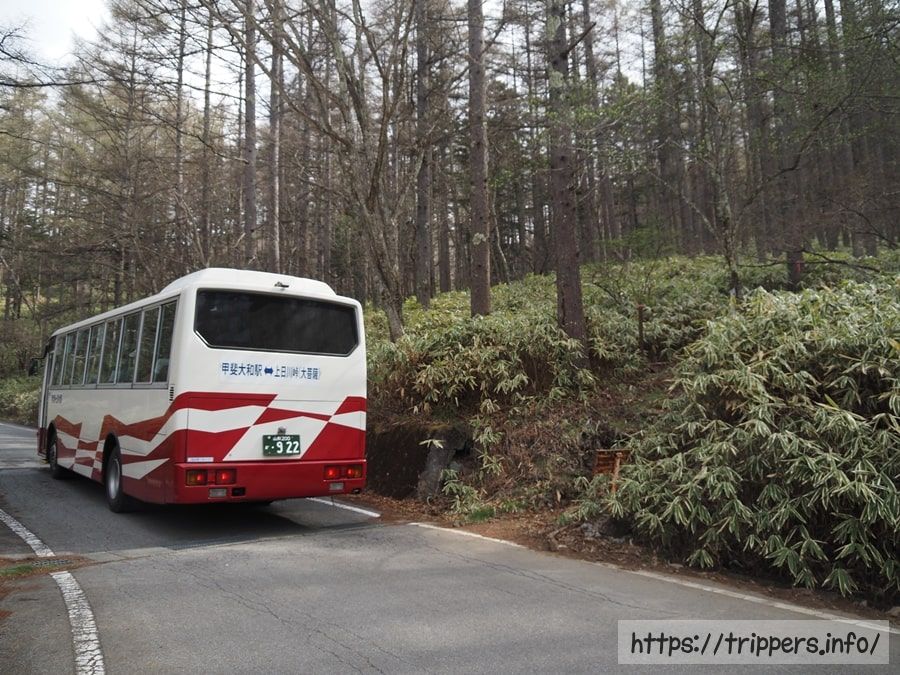 まずは甲斐大和駅からバスに乗車し、小屋平バス停で下車します。