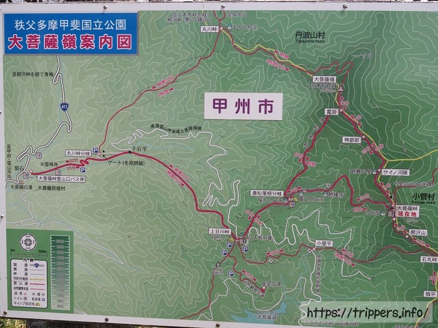 今回歩く大菩薩嶺の登山マップです。上日川峠と石丸峠のエリアだけなら、歩く範囲や距離は短いですが、丸川峠や大菩薩峠登山口バス停を含めると、果てしない距離になります。ただし大菩薩峠登山口バス停と塩山駅を繋ぐ山梨交通のバスは一律300円の乗車料金で、破格の安さです。甲斐大和駅から上日川峠・石丸峠へ向かう栄和交通バスの乗車料金は1000円程です。