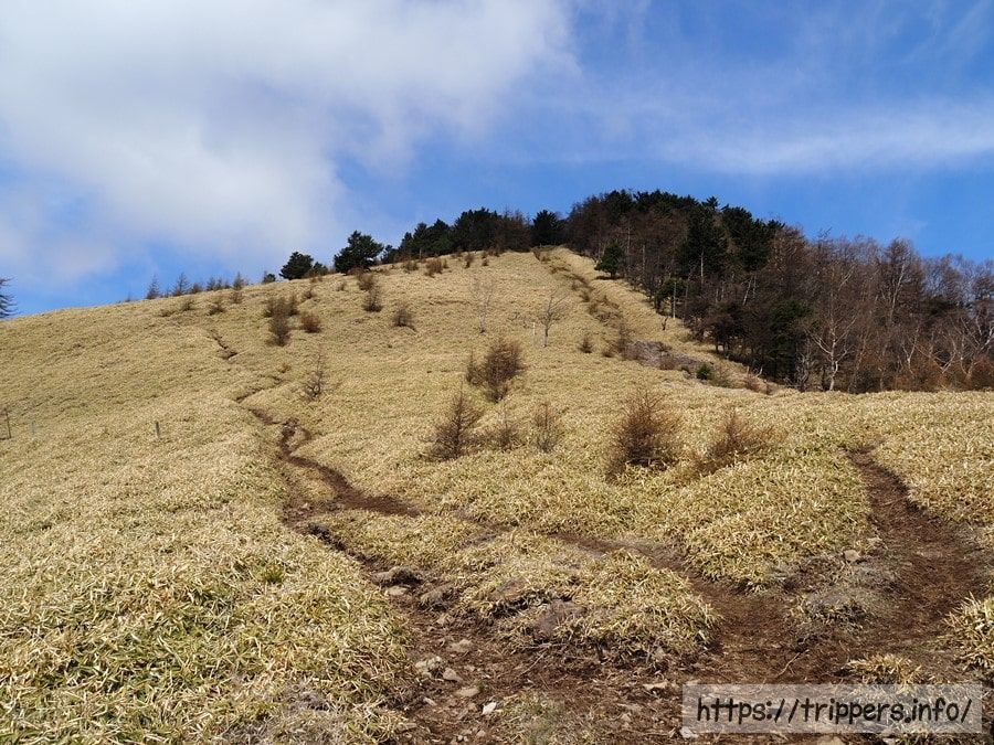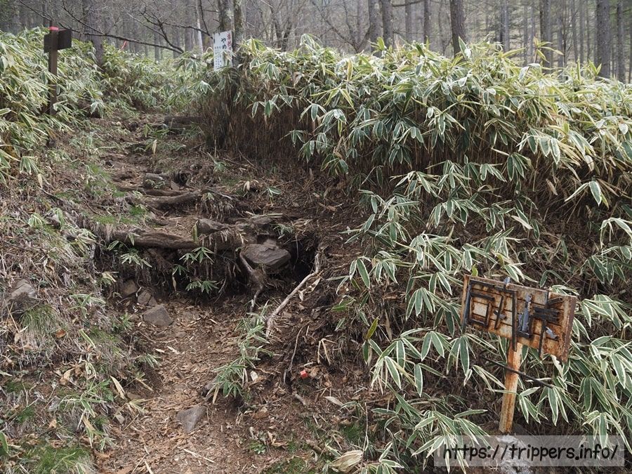 賽ノ河原を通過します。登山道は左へ続いていますが、そっちへ行かず真っすぐ進むと妙見ノ頭になります。