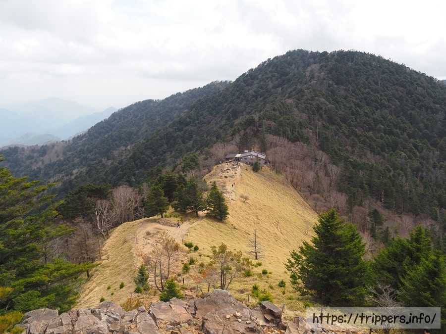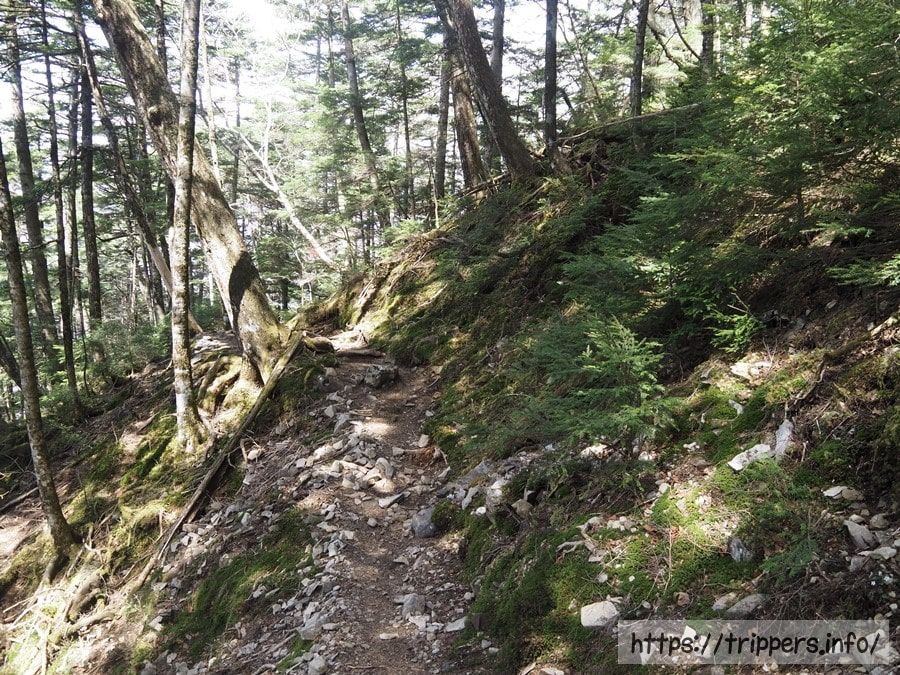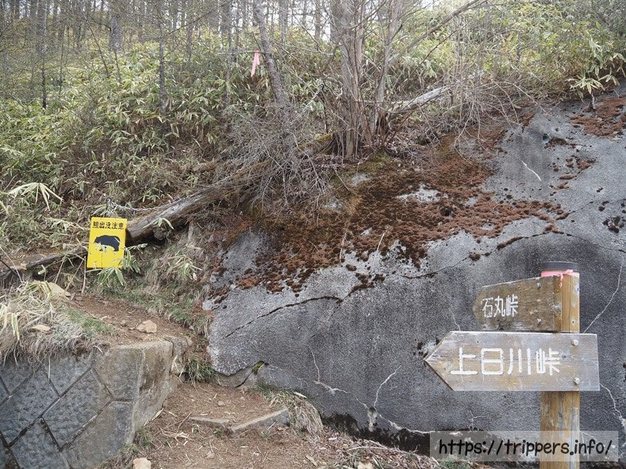 標高1,952mある親不知ノ頭に到着しました。読みは「おやしらずのあたま」です。6月になると、ここら辺の登山道にレンゲツツジが咲き誇り、緑と赤のコントラストが綺麗な場所になります。