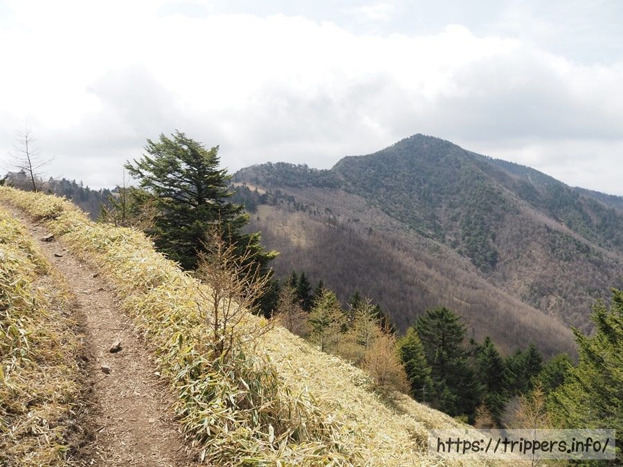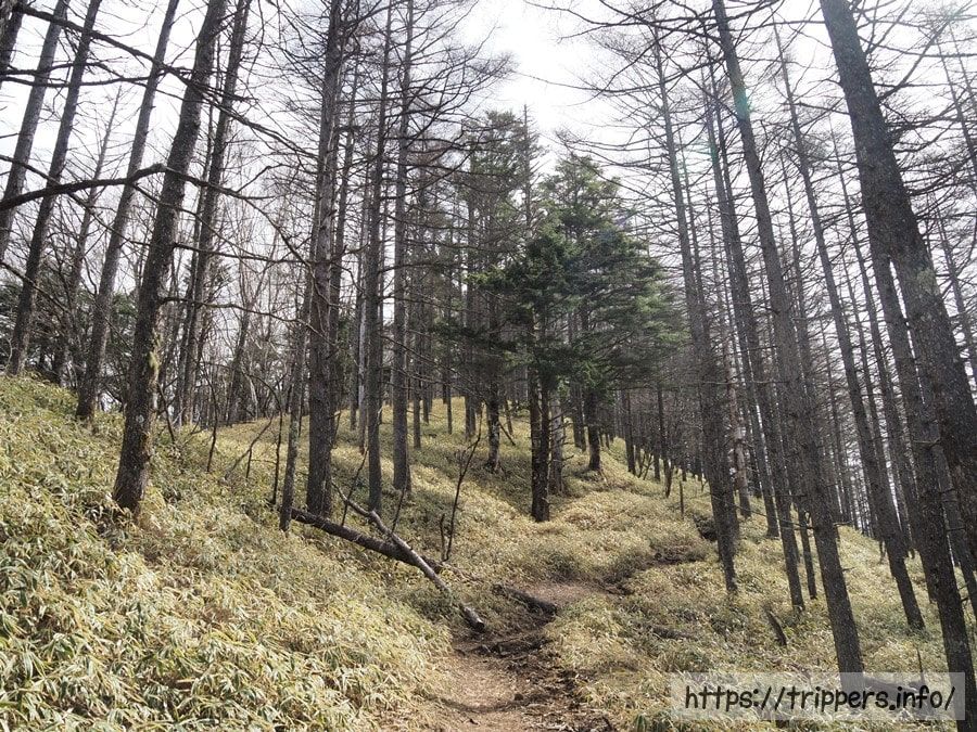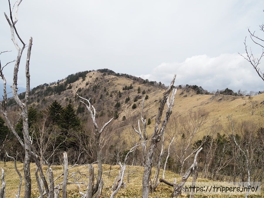 大菩薩嶺の山体が見えてきました。立ち枯れした木々が何とも言えない情景です。
