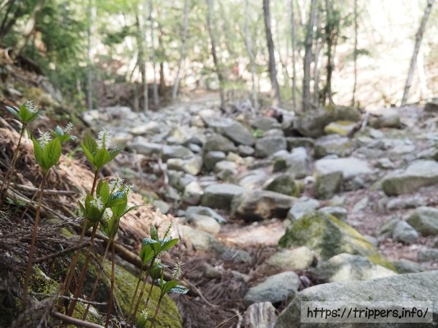 みそぎ沢まで下山したら、痩せ尾根や急登は出てこなくなります。ヒトリシズカが咲いていました。