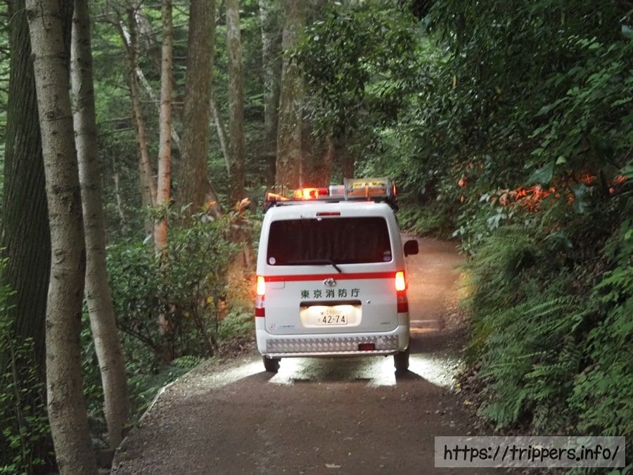 今日はお昼過ぎから陽が暮れる時間まで、消防車や救急車、ヘリコプター、消防団員を見かけました。昼間に6号路で行動不能の人がいたようですが、多くの登山者が下山して人が僅かな夕暮れ時も捜索が続いていたので、事故は1件だけではなさそうです。