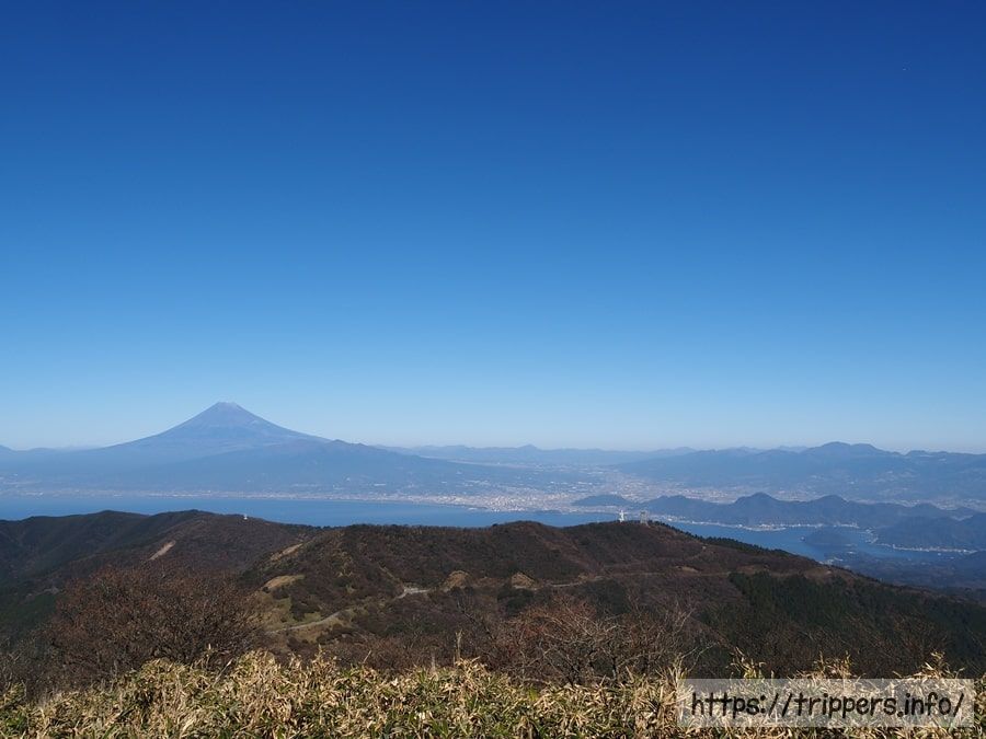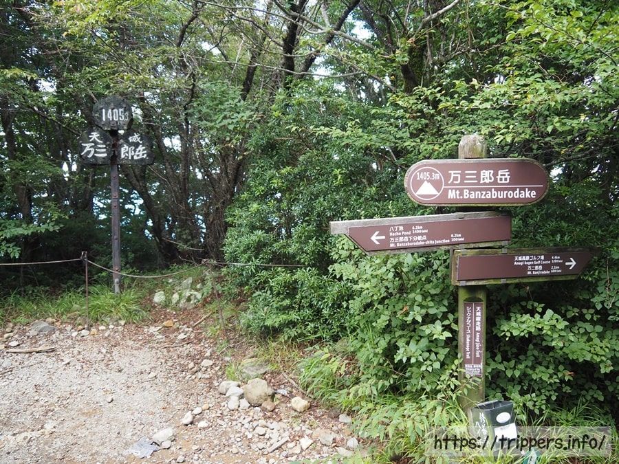 標高12,99mある万二郎岳に到着しました。今日は愛鷹連峰や富士山など、ここより北部は雨雲が多い天気予報でした。それに対し、ここは雨が降らないため、ここでも目的の花は見れるからと訪れた次第です。