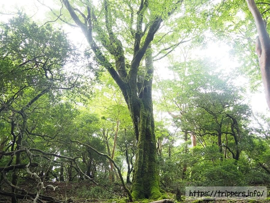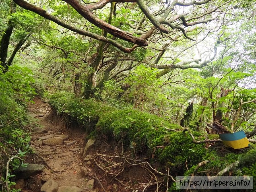 天城縦走登山口バス停でバスを下車したら、万二郎岳を目指します。その後に万三郎岳を登ります。周回コースを時計回りに進み、天城縦走登山口バス停へ下山します。伊豆半島にある天城山は年平均降水量が日本平均の2.5倍と雨が多い地域です。そのため苔が多く、苔むした岩は滑りやすく転倒に注意が必要です。