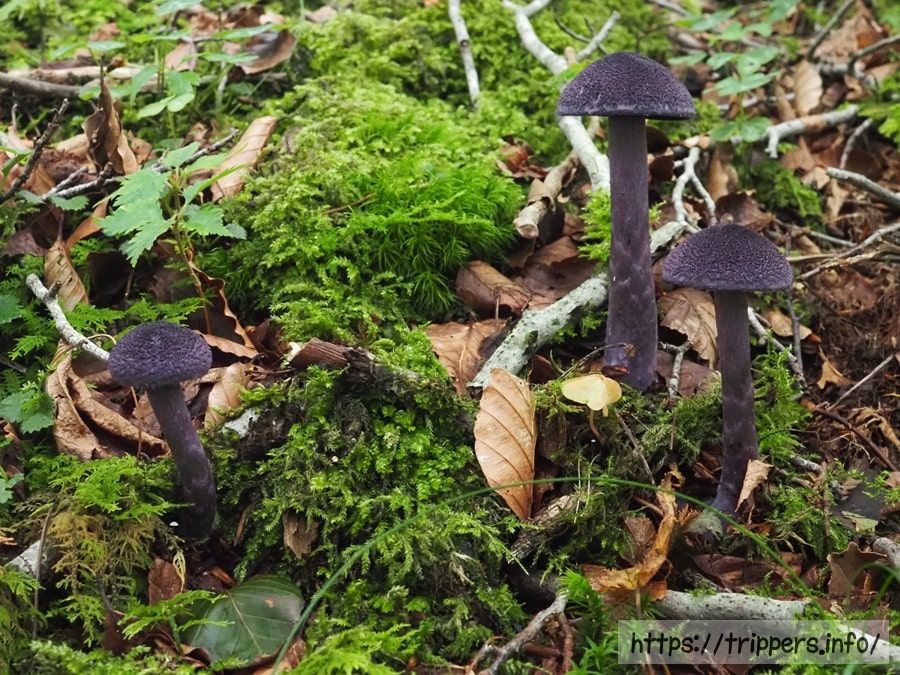 ムラサキフウセンタケだと思います。様々な色のキノコに出会えたら、楽しいと思います。
