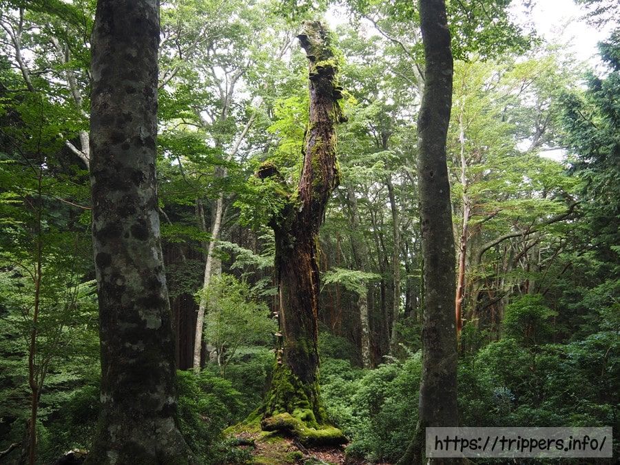 天狗の止まり木のような樹木を見つけました。実は、伊豆には万太郎(達磨山)と万二郎、万三郎と呼ばれる天狗の三兄弟が住んでいたという伝説があります。それが今回登った山の山頂名になっています。達磨山は天城山から離れていますが、西伊豆にあります。樹木の枝分かれしているY字の所に天狗がいる気がしました。