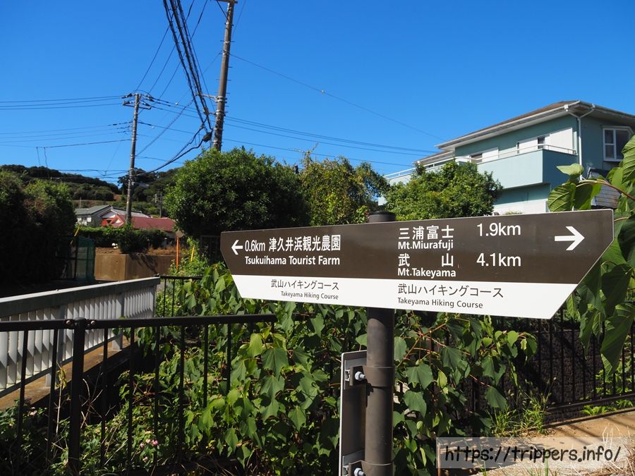 登山地図です。駅から津久井浜観光農園まで道路を歩き、武山から三浦富士へ縦走します。