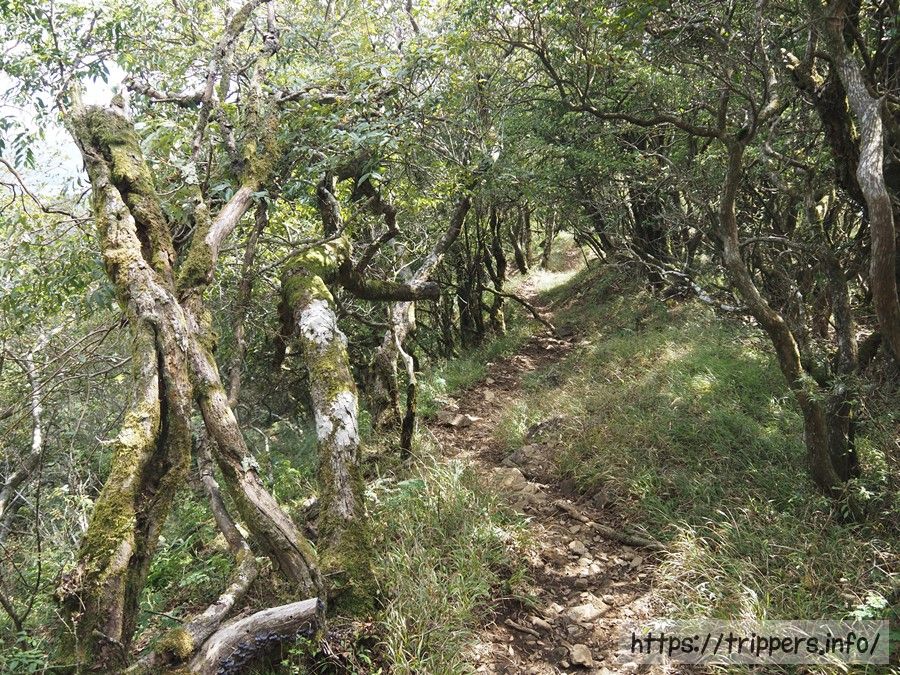 誰とも出会わない二ノ塔尾根では、利用者が乏しすぎるのか、浮石だらけで滑りました。