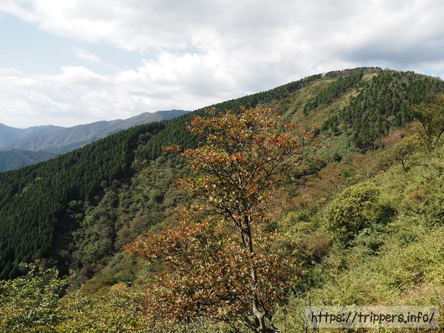 二ノ塔尾根から見た三ノ塔です。今日はシロヤシオの葉が紅葉を始めていました。