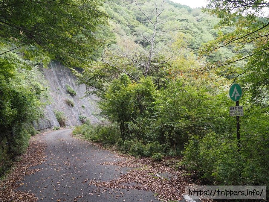 車道に到着しました。葛葉ノ泉までは車道を歩いてげざんすることにしました。落石や土砂崩れのある道でしたが、浮石で転倒するリスクはなさそうです。