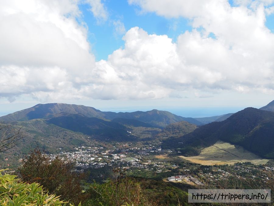 丸岳の周辺からは抜群の展望がありました。右手には仙石原すすき草原、左手の外輪山は明神ヶ岳と明星ヶ岳で、どちらも神奈川県の山(分県登山ガイド)に選ばれています。ただし、山頂やその周辺からの展望があるのは明神ヶ岳のみです。