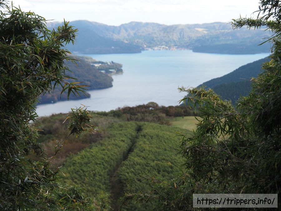芦ノ湖が目前に見えてきたら、登山は終盤になります。今回は標高1,000m前後の登山道をずっと歩いてきました。
