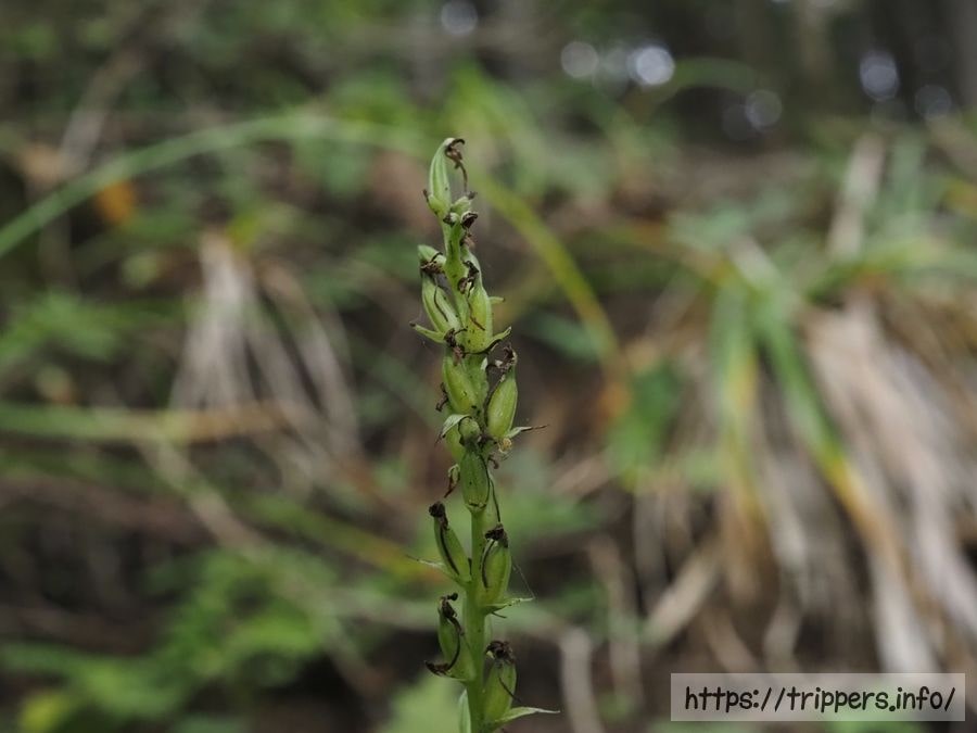 ここからは今日出会った山野草の紹介です。まずはトンボソウです。結実していましたが、何株か見つけました。群れずに、点在しているようです。