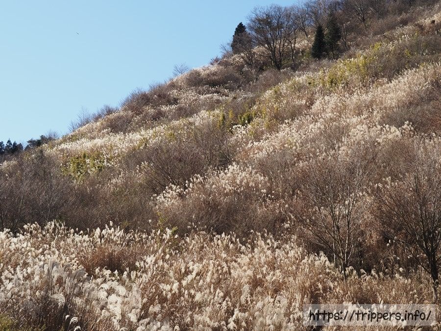 まずは岳ノ台へ向かいます。ススキが黄金色に輝いていました。