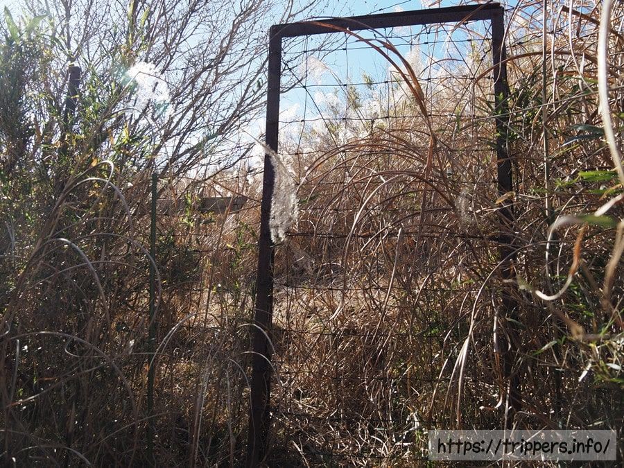 動物避けの扉を開けて、藪漕ぎをしたら、登山道との接点にまた扉があり、そこから脱出しました。