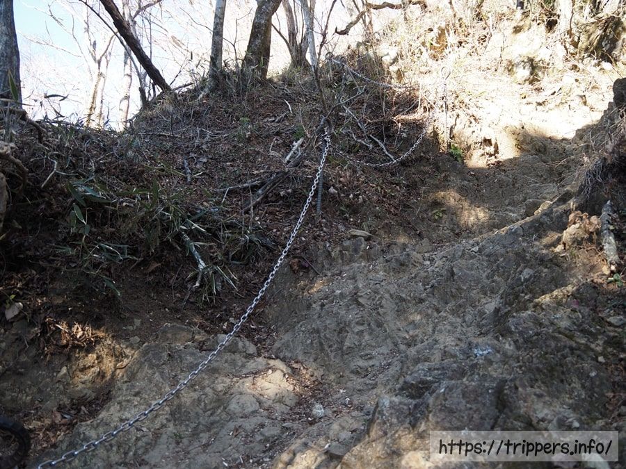 鎖はありますが、難所はありません。小さい石ころの上を歩くと、滑りやすい登山道です。また落ち葉によって滑って転倒も注意が必要です。本当はカンスコロバシ沢右岸尾根を歩こうと計画をしていたのですが、冬は陽の時間が短く、あっという間に暗く寒くなるため、別の機会にしました。