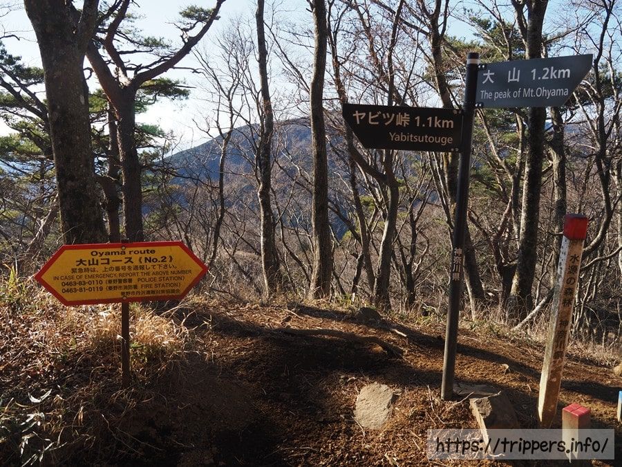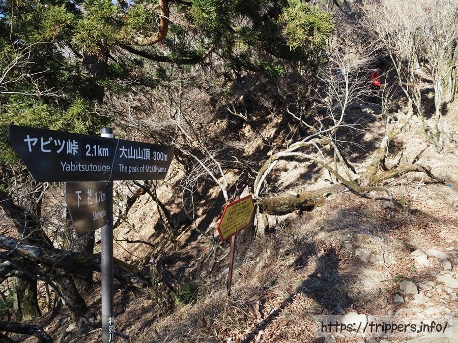 ベンチで休憩します。大山から阿夫利神社下社への表参道(本坂)は以前歩いたことがあったのですが、その時は転倒による行動不能で救助されている女性を見かけました。低い山ですが、年に40件程の事故がある山です。