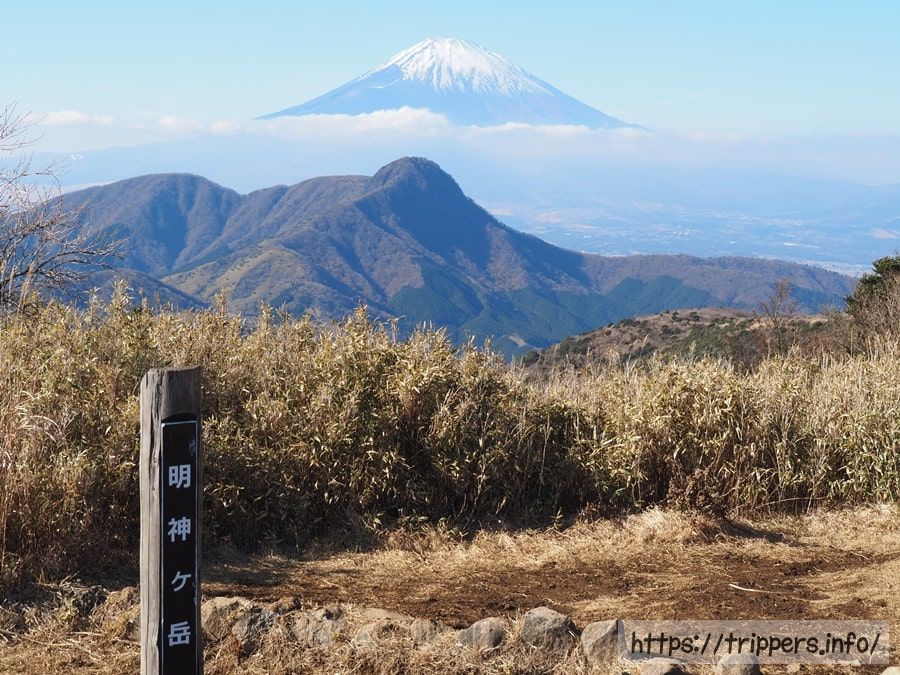 年末の登山納めは富士山が良く見える箱根の明神ヶ岳に決めました。新年の登山始めとしても最適な山です。大雄山最乗寺の奥の院から登り、二ノ宮金次郎芝刈りコースで下山します。大きな怪我をせず登り納めができました。