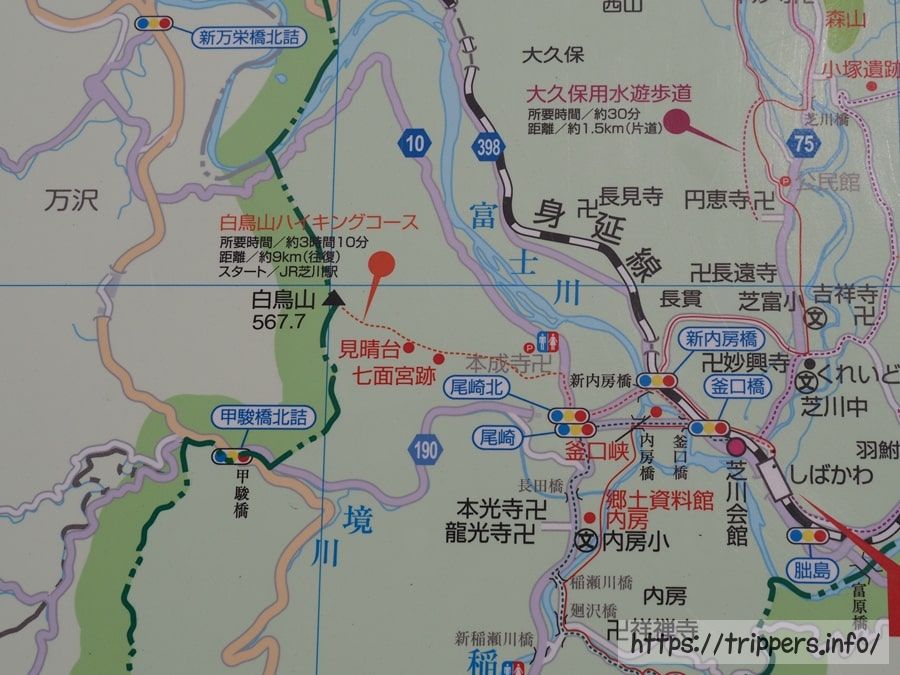 白鳥山は恋人の聖地になっており、山頂からはハート型にくり抜かれたモニュメントから富士山を望むことができます。この地域では「どんど焼き」をすると不思議なことが起きることから、現在も禁忌とされています。ここ県南部ではヤマビルが多いことで知られており、非活動時期の冬に登山するのがお勧めです。