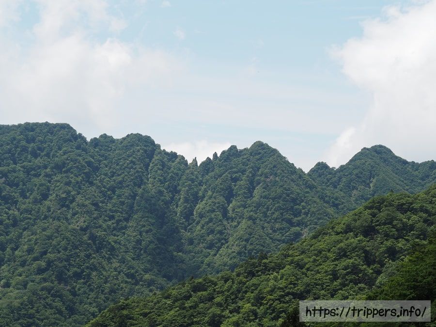 蓬莱山に到着しました。ここから少しだけ鋸岳へ行ってみましたが、タイムアップとなり、引き返しました。鋸岳への縦走ルートは、位牌岳まで行かず、蓬莱山と鋸岳のピストンなら危険度も低いのかもと考えましたが、時間に追われて風化や崩落が進んだ道を歩くのは危険です。