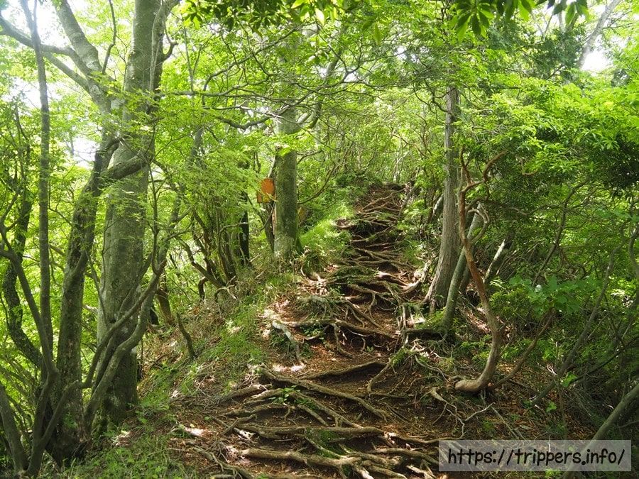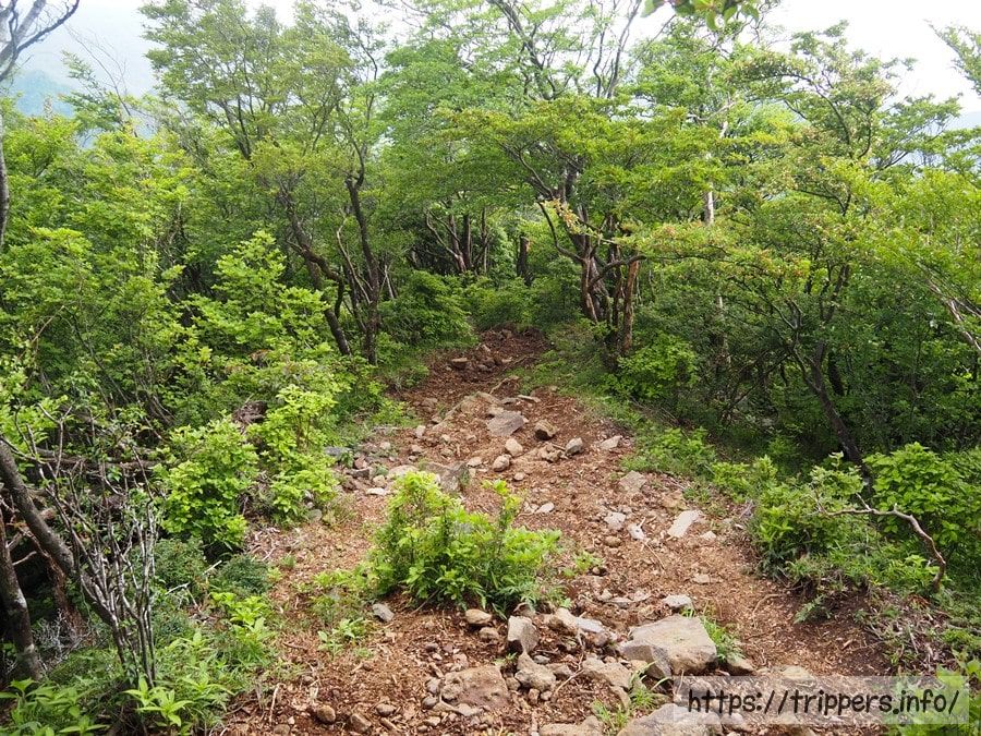 呼子岳へ向かうための稜線を歩いていきます。ここから先は、歩く人が少ないと思います。実際に、越前岳より先で出逢った登山者は0人でした。