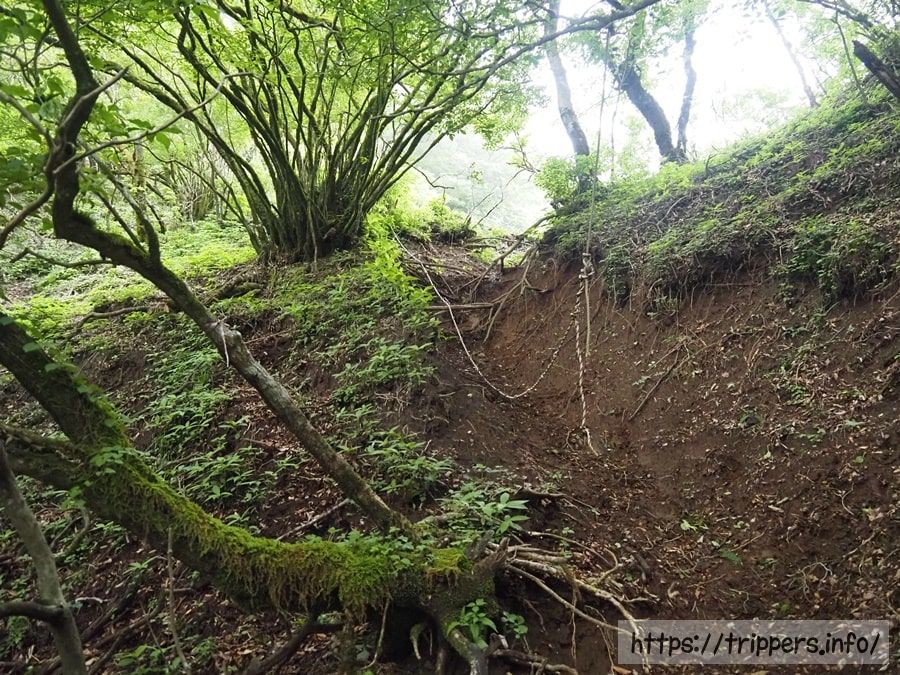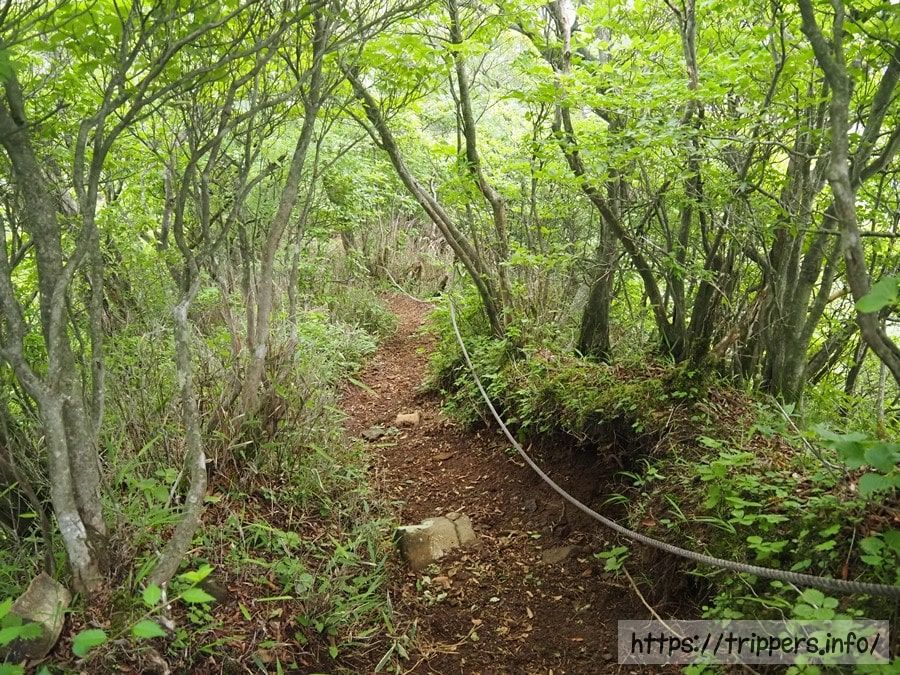 割石峠へ向かって下っていきます。途中で滑りやすい道がありますが、ロープが設置されており安全でした。